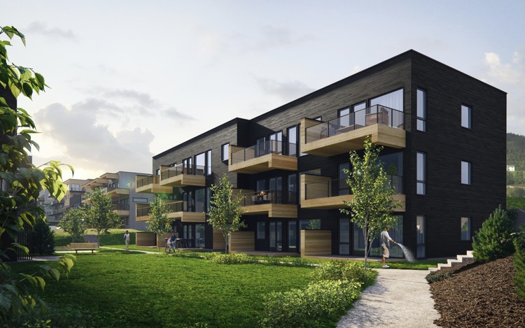 I august og september 2025 leverte Reine Element elementer til to leilighetsbygg ved Tintratunet på Voss.